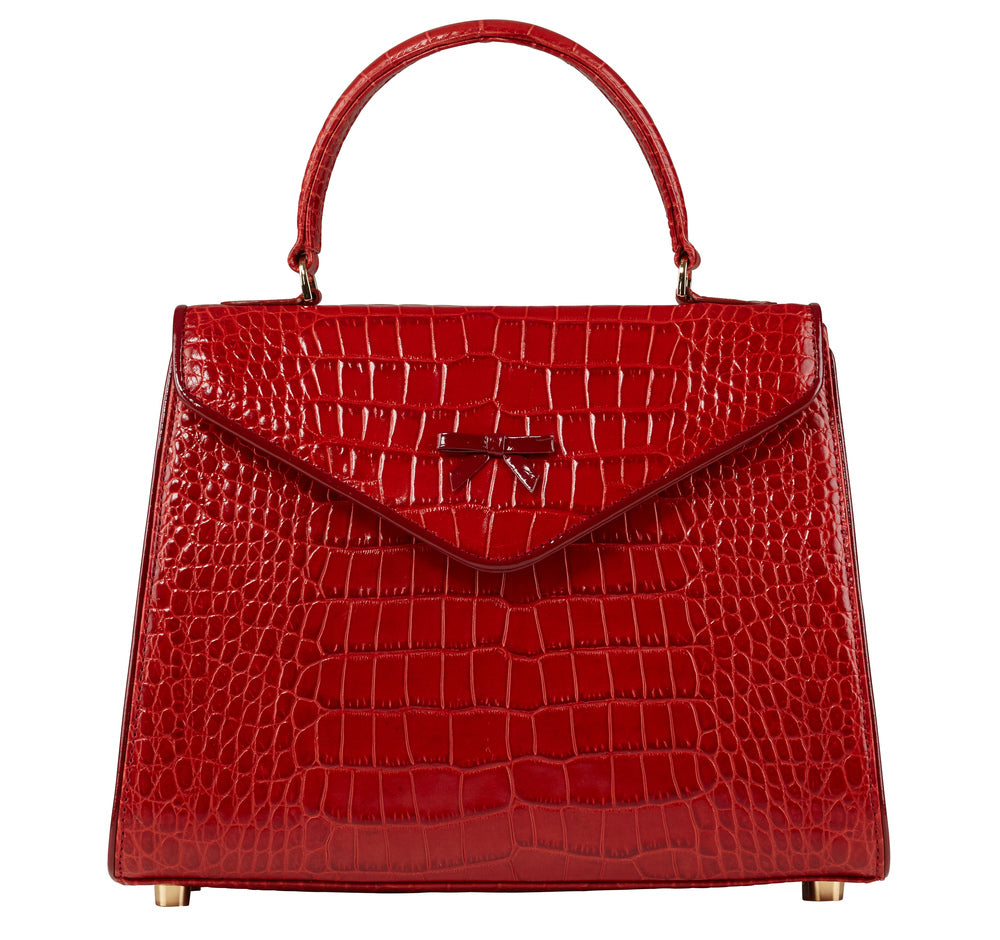 - Lipstick red Italian crocodile embossed leather